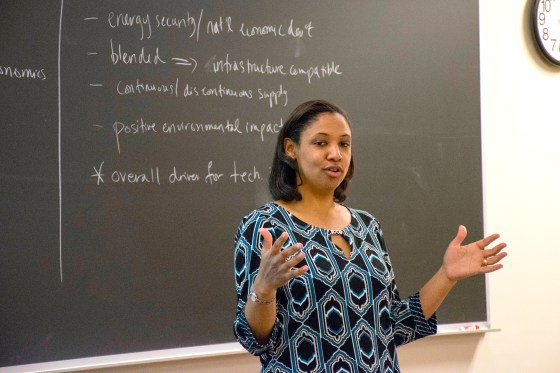 Photo: Sofia Cardamone, MITEI. Professor Kristala Prather engages undergrads in a discussion about the future of biofuels. Article